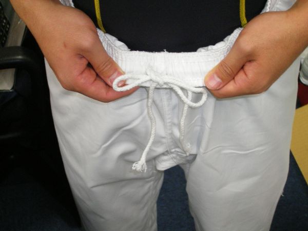 ↑通常の空手着と違って、ウエストの部分がゴムになってます。
